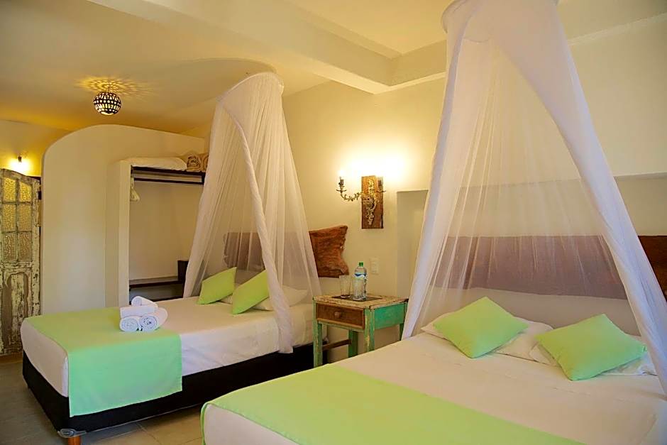 This spacious sustainable quadruple cabin has 2 king-size beds and offers free Wi-Fi, a palapa terrace with sea views and a private bathroom. It has bright traditional décor with tiled floors, and includes a safe, a fan and mosquito nets.